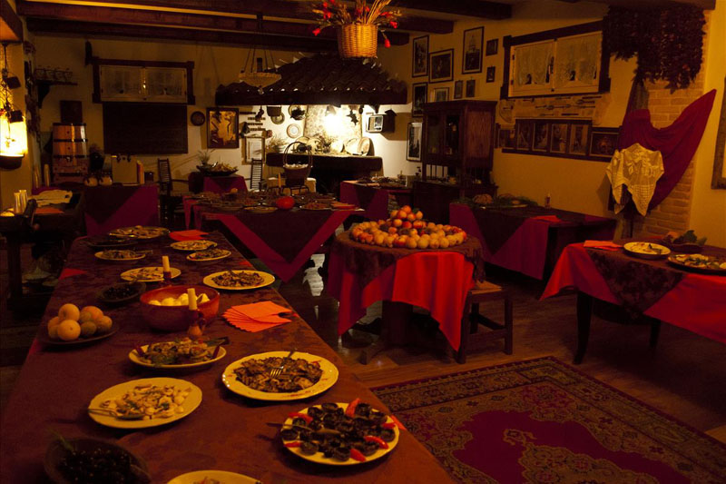 La suggestiva sala per 50 persone è arredata con mobilio d'epoca contadina e diventa inoltre un punto di incontro anche per eventi speciali. Il grande camino viene utilizzato per cucinare legumi, cotiche di maiale, patate, castagne, etc. La nostra dispensa è ricca di prodotti sani e tradizionali, provenienti dalla nostra attività agricola e sarà possibile acquistarli per portare nelle vostre case i tipici sapori calabresi.