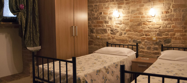 L'agriturismo offre ospitalità in singoli appartamenti, con ingressi indipendenti, o in una delle due dimore affittate interamente. Per chi sceglie il trattamento B&B proponiamo una ricca colazione a base di prodotti tipici della zona. Tutte le sistemazioni sono state recentemente restaurate e, oltre ai comfort, offrono viste panoramiche sui vigneti e sull'Appennino Piceno. Ogni appartamento dispone di cucina attrezzata, bagno con doccia, lavastoviglie e Tv satellitare. Nei rustici che ospitano gli appartamenti è presente un locale lavanderia con lavatrice, asse da stiro e stendi-biancheria.