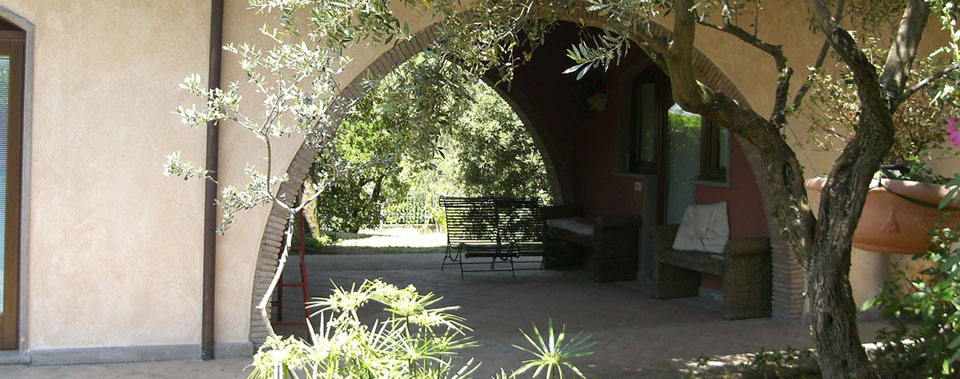 La nostra dimora è un piacevole B&B a Viterbo, a meno di due km dal centro della città. Siamo nel Lazio, in posizione panoramica, tra la città e i Monti Cimini. La struttura si trova immersa nel verde, in un parco di cipressi, lecci, querce e ulivi, tra prati e aiuole di fiori colorati. L'ambiente è ricavato in un'ala della villa, con stile che ricorda sia la domus romana che il tipico casale toscano. I materiali utilizzati sono infatti il legno, il cotto e il peperino.