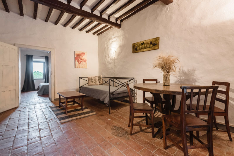 Il nostro agriturismo offre ospitalità in appartamenti e villette di diversa tipologia: monolocali, bilocali, trilocali e quadrilocali. Le 3 villette si trovano vicino alla piscina e hanno l'ingresso indipendente con giardino o veranda. Due villette si sviluppano su più livelli e una su un unico piano. Gli appartamenti si trovano in entrambe le case padronali, hanno l'ingresso indipendente ed un comodo spazio esterno arredato con tavolo e sedie. Ogni alloggio gode di vista panoramica, è arredato con mobilio antico e dispone di veranda e ingresso indipendente sul giardino. Per leggere la descrizione dettagliata degli alloggi clicca sul pulsante.