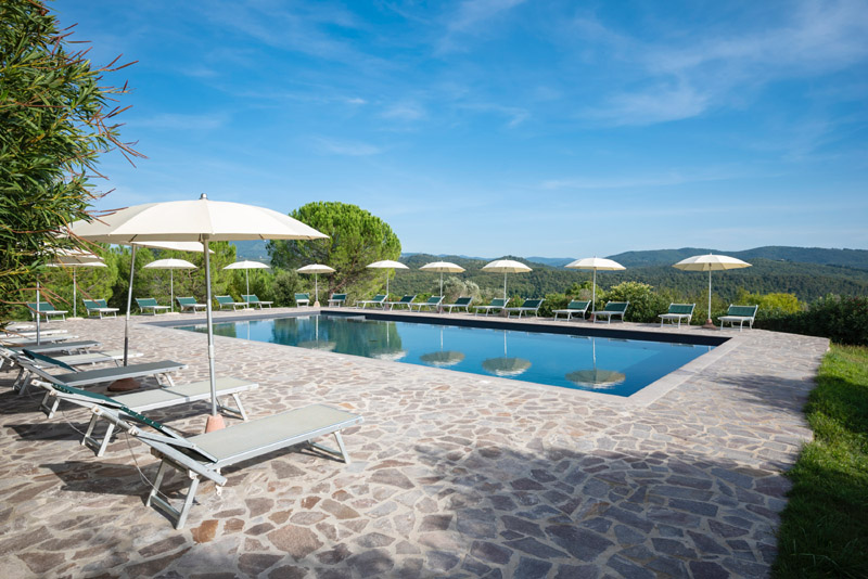 A disposizione degli ospiti una splendida piscina attrezzata con sdraio e ombrelloni, perfetta per rilassarsi e per sfuggire al caldo estivo con un tuffo in acqua. La piscina è circondata dal verde ed offre una magnifica vista panoramica sulla campagna circostante. Partendo dalla nostra struttura avrete molte possibilità di escursioni fra campi e boschi, a piedi o in bicicletta. Sia i ciclisti da strada che i mountain bikers potranno scoprire tantissimi percorsi di ogni livello. Su richiesta organizziamo anche escursioni guidate. A vostra disposizione anche una piccola officina per riparazioni. Le strade panoramiche e senza traffico fanno del nostro agriturismo il luogo ideale anche per gli appassionati della motocicletta.