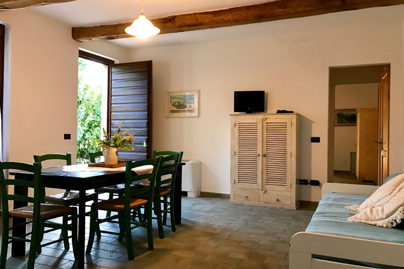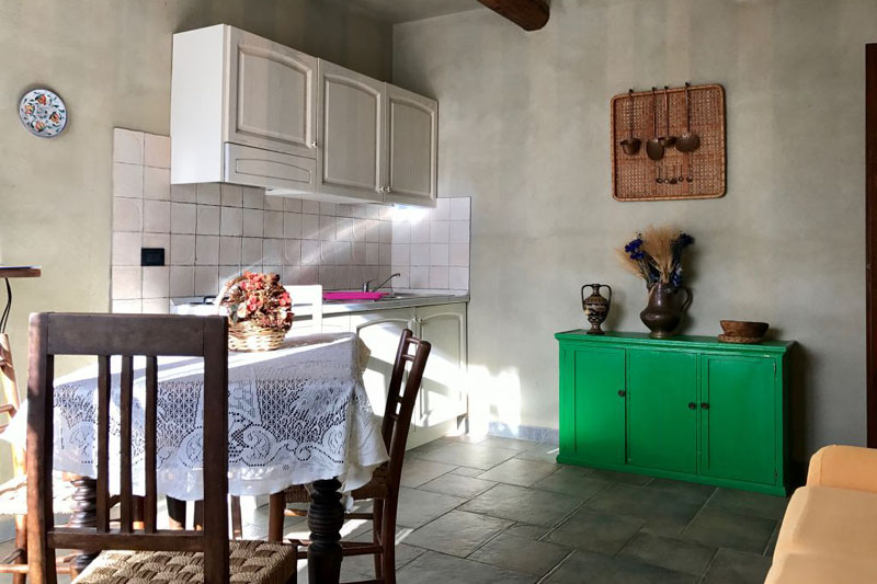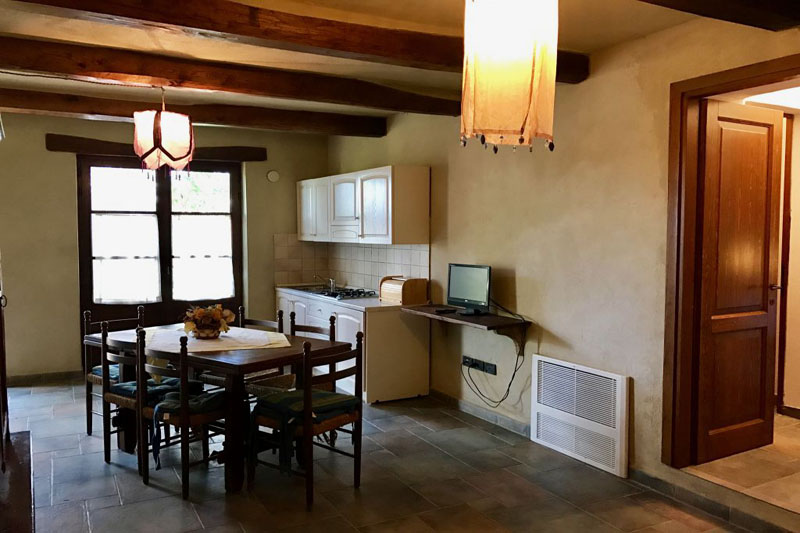 Il casale offre ospitalità in 12 appartamenti arredati con mobili ed oggetti di antiquariato. Abbiamo tre trilocali con due camere da letto, soggiorno con angolo cottura, bagno con doccia e televisione: Mirto, Belvedere e Lecci. Due trilocali super con due camere, ampio soggiorno con angolo cottura, due bagni con doccia e telefono: Noce, Stalla e Ciliegi. Due bilocali con camera matrimoniale e soggiorno: Giogo e Querciolaia. Infine, quattro monolocali con letto matrimoniale e angolo cottura, bagno con doccia e televisione: Aria, Terra Acqua e Fuoco. Le sistemazioni prevedono un comodo spazio esterno riservato, attrezzato con tavolo e sedie. La reception è aperta per la consegna degli appartamenti dalle ore 15 alle ore 19 del giorno di arrivo, mentre l'alloggio dovrà essere lasciato libero entro le ore 10 del giorno di partenza.