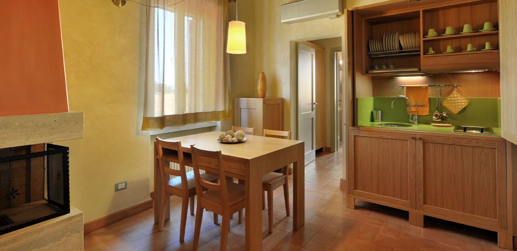Disponiamo di sei appartamenti tra cui un monolocale, tre bilocali, di cui uno accessibile ai diversamente abili, ed un trilocale. Arredati con semplicità e raffinatezza, si è cercato di creare un ambiente confortevole e rilassante in sintonia con la natura circostante. La nostra country house è contraddistinta da particolari come le pitture decorative naturali allacqua delle pareti, il pavimento in cotto trattato con cera naturale e i mobili dalla linea essenziale in legno massello di rovere. Per leggere la descrizione dettagliata degli appartamenti clicca sul pulsante.