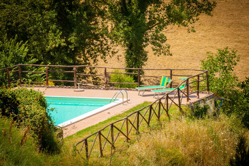 A disposizione degli ospiti una graziosa piscina con vista panoramica sulle colline circostanti. La piscina è attrezzata con sdraio, ombrelloni, e lettini ed è quindi l'angolo ideale in cui rilassarsi e rinfrescarsi durante le giornate estive. Per gli amanti della natura è possibile praticare sport in canoa sul vicino lago di Corbara, fare passeggiate a cavallo nelle vicinanze, escursioni in mountain bike, oppure trekking sui monti Sibillini.