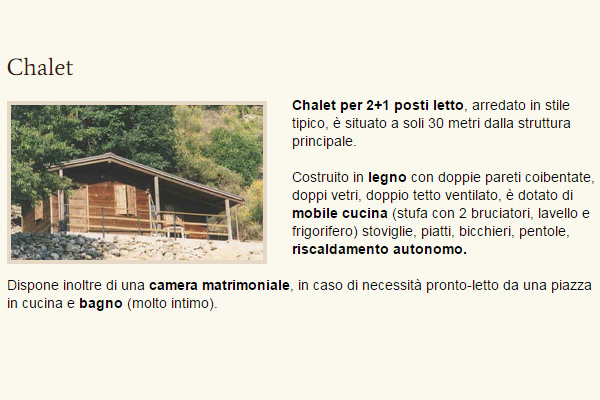 A vostra disposizione cinque appartamenti, ciascuno con caratteristiche uniche e accesso indipendente. "Rosso" e "Verde" sono gli appartamenti più spaziosi, ideali per famiglie numerose e gruppi di amici che possono ospitare da quattro a sette persone. "Blu" dispone invece dai due ai cinque posti letto, anch'esso molto spazioso e ben arredato. "Avorio" è il più piccolo, ma non meno confortevole, 2+2 posti letto. Infine "Chalet", situato a circa trenta metri dalla struttura, con la possibilità di 2+1 posti letto e risulta la soluzione ideale per le coppie o per coloro che cercano un soggiorno con maggior privacy e indipendenza. Per la descrizione dettagliata degli appartamenti clicca sul pulsante.