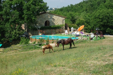 Agriturismo a Casole dElsa in provincia di Siena con appartamenti, piscina e maneggio. Ideale per gli amanti delle vacanze a cavallo in Toscana, dei trekking a piedi e delle escusioni in mountain bike. Animali ammessi.