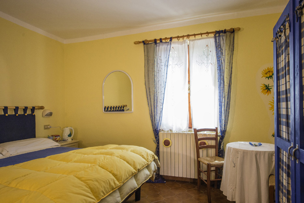 Le due camere da letto, entrambe con vista sul giardino, sono arredate con stile e risultano accoglienti e confortevoli. Ogni stanza è dotata di televisione, aria condizionata, ventilatore e bollitore con tè e tisane. La camera "Romantica" si presenta con mobili antichi e travi a vista, mentre "Girasoli" è caratterizzata da pareti dipinte e mobili colorati blu e gialli. Ogni giorno vengono curate nella pulizia, con cambio degli asciugamani e dotazione di saponette e bagno schiuma. I bagni sono ad uso esclusivo degli ospiti di ciascuna camera. Nella nostra struttura disponiamo di parcheggio privato anche per moto, Wi-Fi gratuito e si accettano animali di piccola e media taglia.