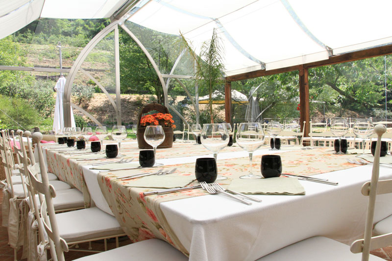 Ai piedi della struttura una splendida piscina, attrezzata con sdraio ed ombrelloni. Il solarium si completa con una suggestiva vasca idromassaggio per un massimo di quattro persone, realizzata utilizzando una vecchia botte. Inoltre, i nostri ospiti avranno la possibilità di richiedere massaggi ayurvedici o partecipare a corsi di yoga. L'atmosfera rustica della villa e le caratteristiche eleganti degli ambienti esterni creano una cornice perfetta per eventi speciali.
