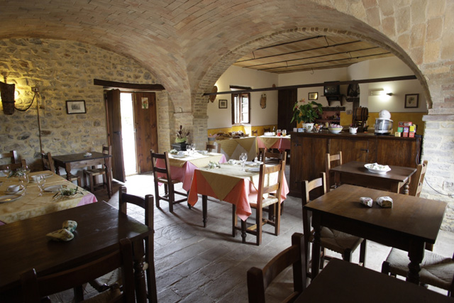 L'agriturismo dispone di ristorante interno dove si possono degustare ottime pietanze, carne di razza Chianina allevata con metodo biologico e sapientemente cotta alla brace, verdure dell'orto, dolci caserecci, cucina vegetariana, acqua minerale della propria sorgente che essendo povera di sodio è adatta per diverse esigenze terapeutiche. E' inoltre possibile organizzare banchetti per cerimonie.