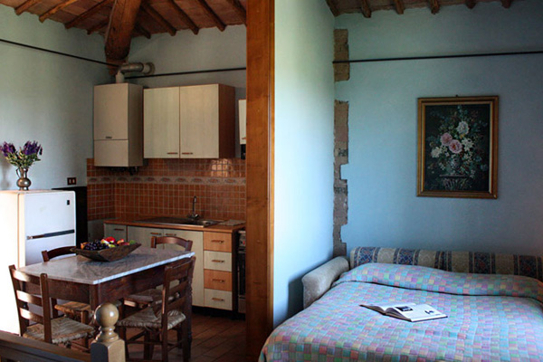 La zona "Cascinale" si trova vicino alla piscina. Una parte del Cascinale è dedicata al nostro ristorante tipico con una area esterna per mangiare nel giardino con splendida vista di vigne, oliveti e delle colline circostanti. Gli appartamenti hanno travi di legno al soffitto e sono arredati con mobili tipici toscani. Alcuni sono situati al piano terra, altri al primo piano. Le cucine sono completamente attrezzate e dispongono di tutto il necessario per cucinare. Tutti gli alloggi sono dotati di asciugamani e lenzuola. Gli appartamenti per due persone hanno una camera matrimoniale, un bagno più un soggiorno con angolo cottura. Gli appartamenti per 4 persone sono più grandi e dispongono di un comodo divano letto matrimoniale nel soggiorno più angolo cottura, una camera matrimoniale e un bagno. Abbiamo anche un appartamento per 6 persone con tre camere matrimoniali, un bagno e una grande cucina-soggiorno. Gli ospiti degli appartamenti possono usufruire del giardino attrezzato con tavoli, sedie e barbecue esterno ad uso comune.