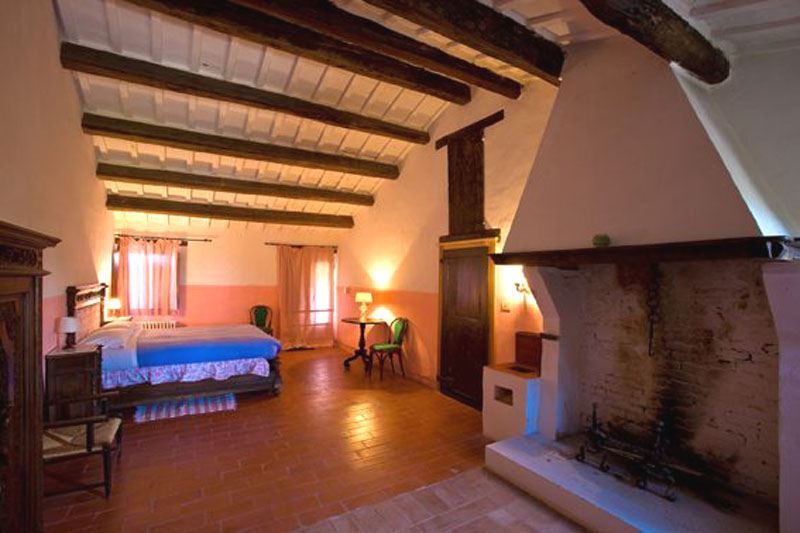 La suite Passerina è al piano terra con entrata indipendente dal giardino, soffitto con travi, arredata con mobili dell'800 e letto con spalliere di ferro battuto. Bagno con doccia privato. La suite Rosso Conero è al primo piano con entrata privata alla quale si accede da una antica scala di mattoni esterna con suo balconcino da utilizzare come spazio indipendente per rilassarsi di fronte a campi arati e verdi colline. La stanza con alti soffitti, decorati da tradizionali travi, è arredata con antichi mobili del '700. Il bagno, di mq. 6, offre una suggestiva vista panoramica sulla Valle Esina. Tutte le altre suites hanno bagni spaziosi con finestre e docce.