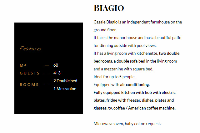 The farmhouse has five independent farmsteads recently built within an estate of more than 5000 mq that faces on the Lake of Bolsena, Montefiascone and the surrounding countryside. The houses, that make available 10 apartments for 40 beds, are recently restored in the traditional style of the rural Tuscany. The apartments are provided with kitchen, living room with sofa bed, double bedroom and private bathroom with shower. Moreover, at the guests disposal independent heating, Wi-Fi connection and air conditioning.