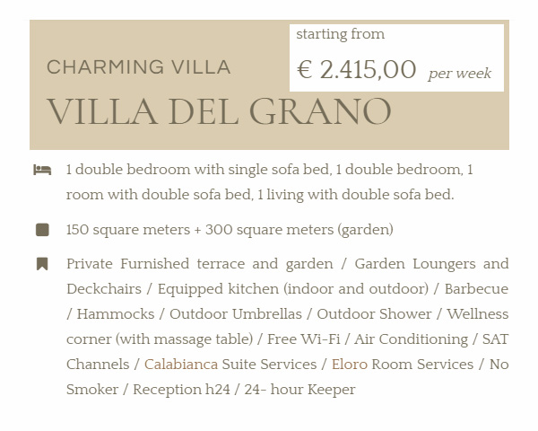 Our guests can opt for 36 rooms that take the name from Sicilian localities in order to pay homage to the beauties of the island. Every room is different from the others and it is characterized by unique details. In addition to the rooms located in the main locations of the manor farm we make available a spacious suite within an exclusive villa. To read the detailed description of the rooms and of the Villa del Grano click on the button.